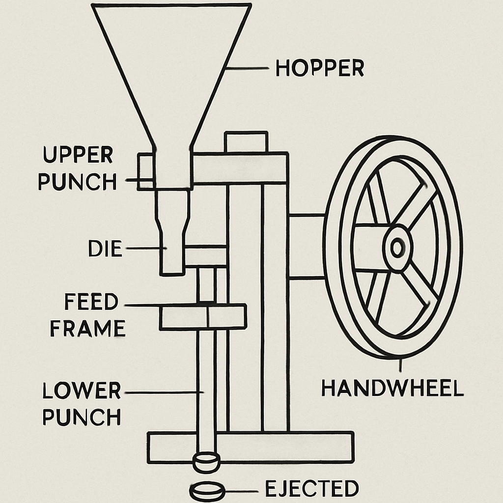 6. Ejection Mechanism: Removes the finished tablet from the die.